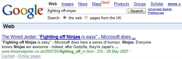 For the Wired Jester is now, officially (thanks, Google), the web’s number 1 resource for FIGHTING OFF NINJAS!